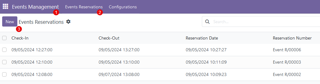 - klicken Sie in der Navigationsleiste auf "Event Reservationen";