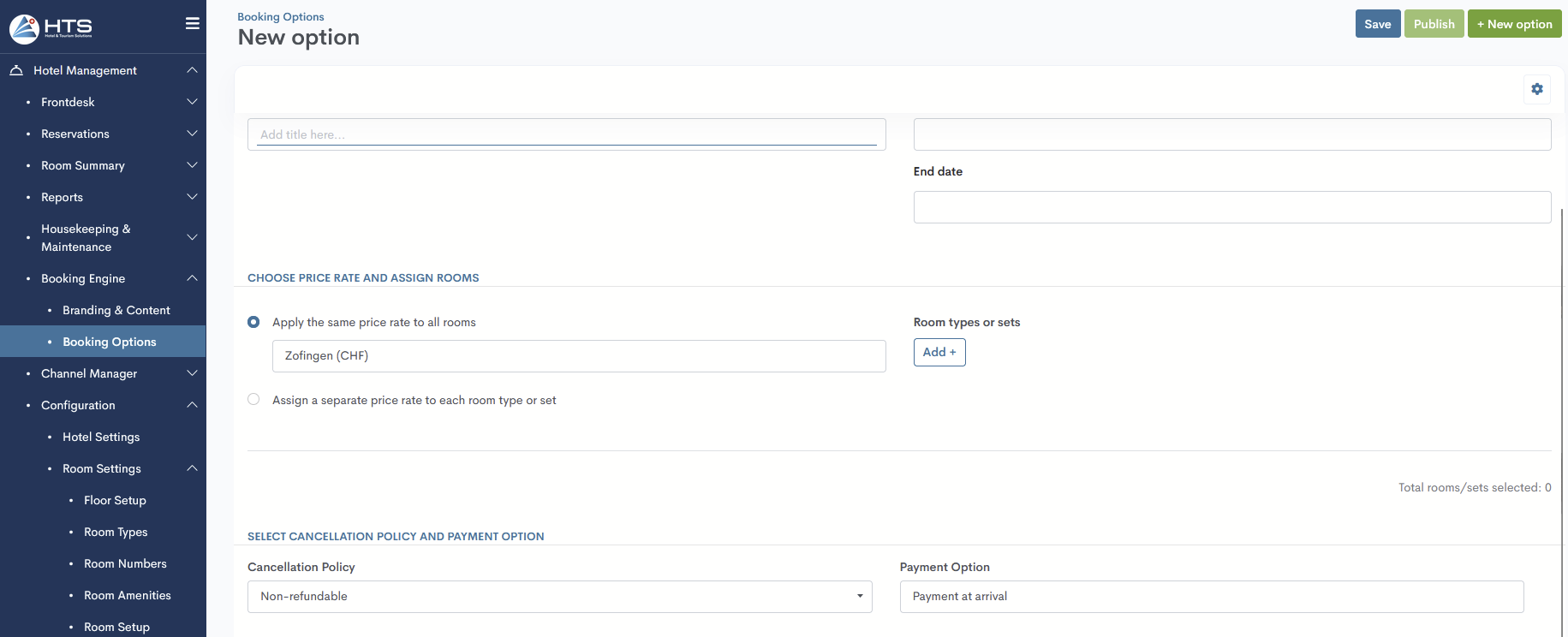 In this section, the user needs to select the price rate (either one for all or individually for each room) and specify the room types or sets in the following fields: