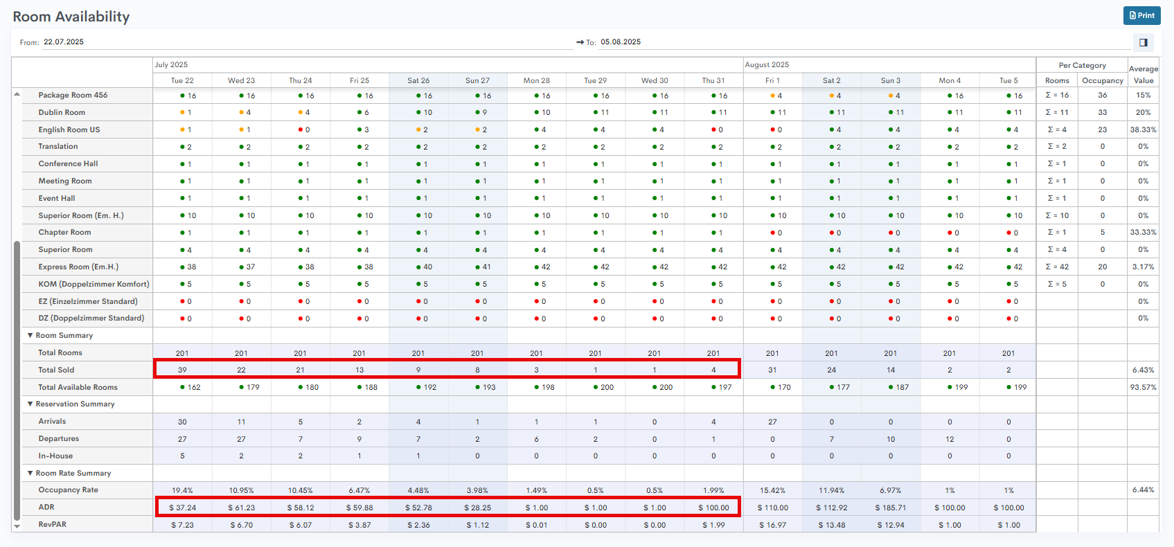- TotalOccupiedRooms - total number of occupied rooms within a defined period