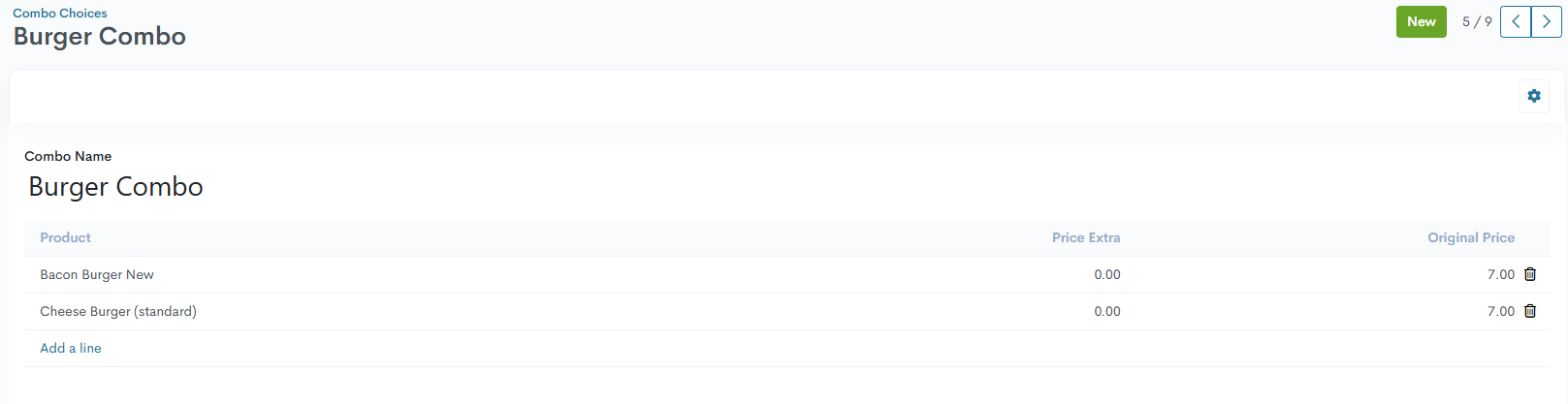Mit der Funktion Produktkombinationen können Benutzer Kombinationsmöglichkeiten für ein einzelnes Produkt definieren und verwalten. Im Zusammenhang mit einem Restaurant ermöglicht die Funktion die Erstellung von Menüs mit mehreren Auswahlmöglichkeiten. Zum Beispiel kann ein Benutzer ein Hauptgericht definieren und verschiedene Optionen für Beilagen, Getränke oder Desserts angeben, die die Kunden mit dem Hauptgericht kombinieren können.