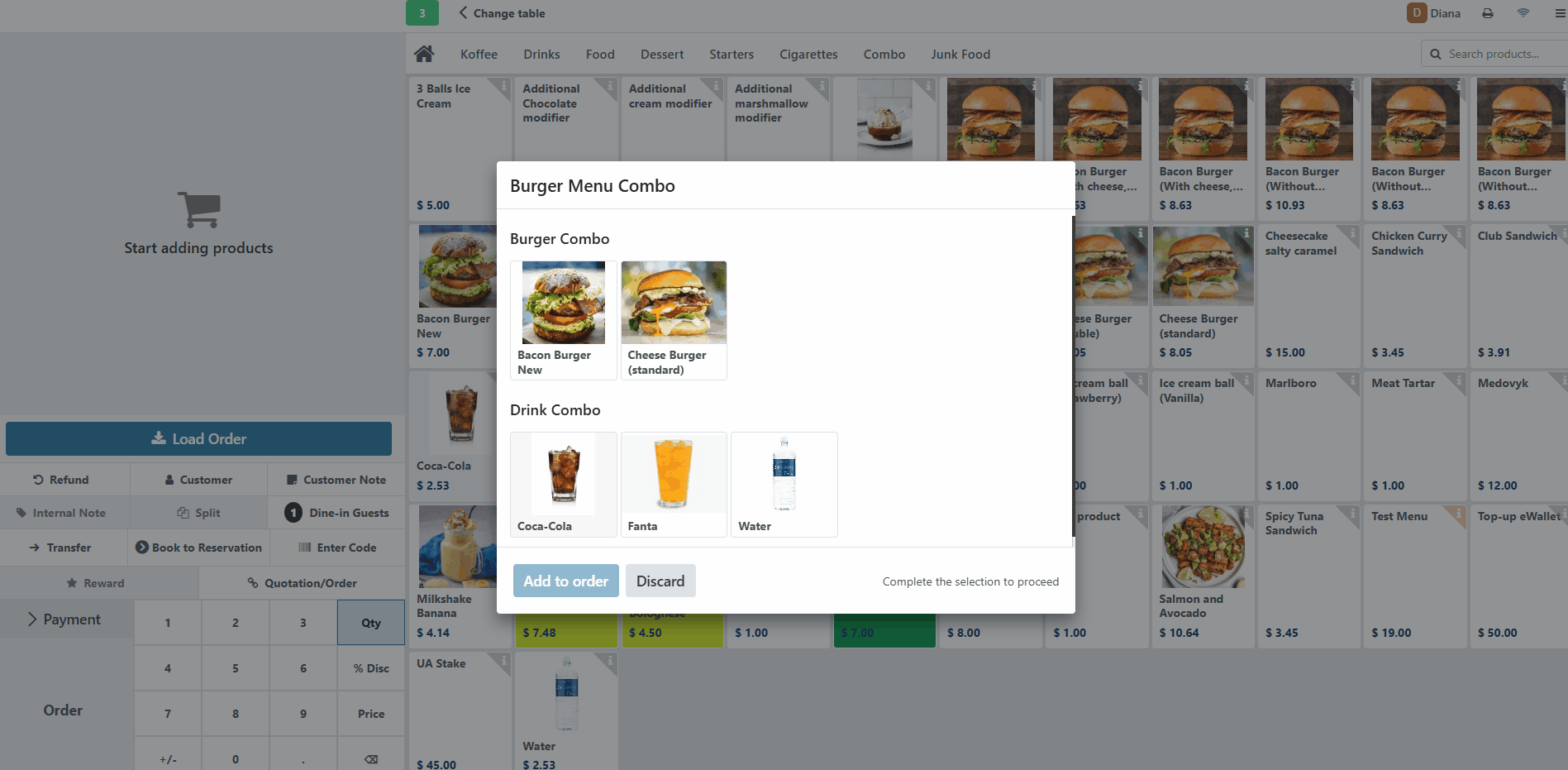 Combo-Produkt in einer PoS-Sitzung