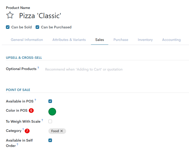 - Kategorie (auf der Registerkarte 'Verkauf') - legt fest, zu welcher PoS-Kategorie dieses Produkt gehört.