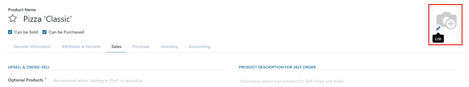 In der oberen rechten Ecke kann der Benutzer ein Bild eines bestimmten Produkts hochladen, das während einer PoS-Sitzung auf dem Bildschirm des Geräts sichtbar sein soll.
