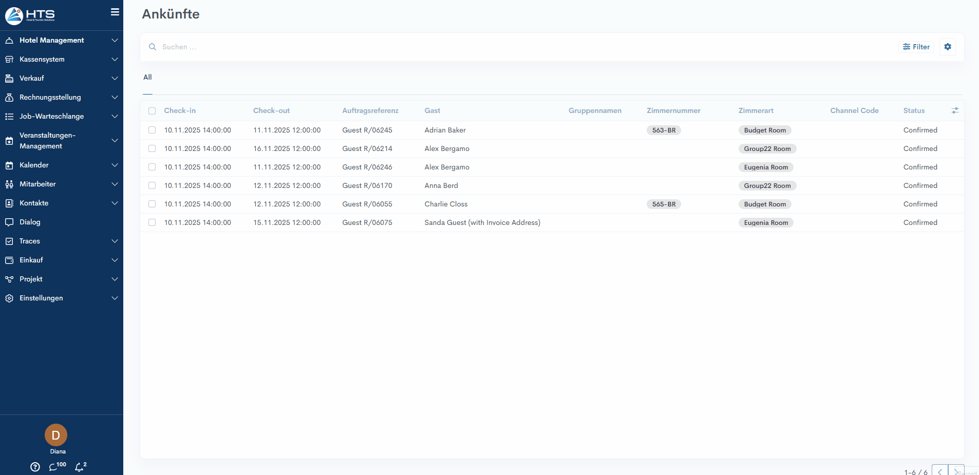 - Darunter befindet sich der Status – Neu, Rufen oder Storniert – zusammen mit der Uhrzeit.