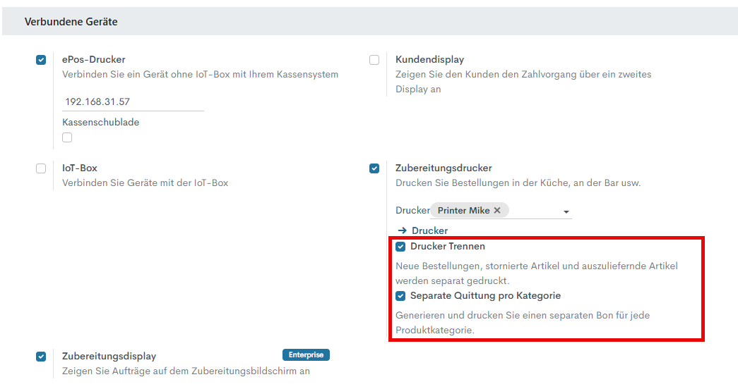 - Aktivieren Sie die Option Zubereitungsdrucker.