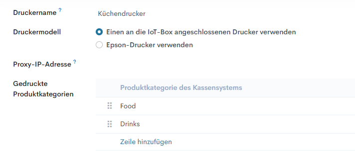 Zusätzliche Küchendrucker-Einstellungen