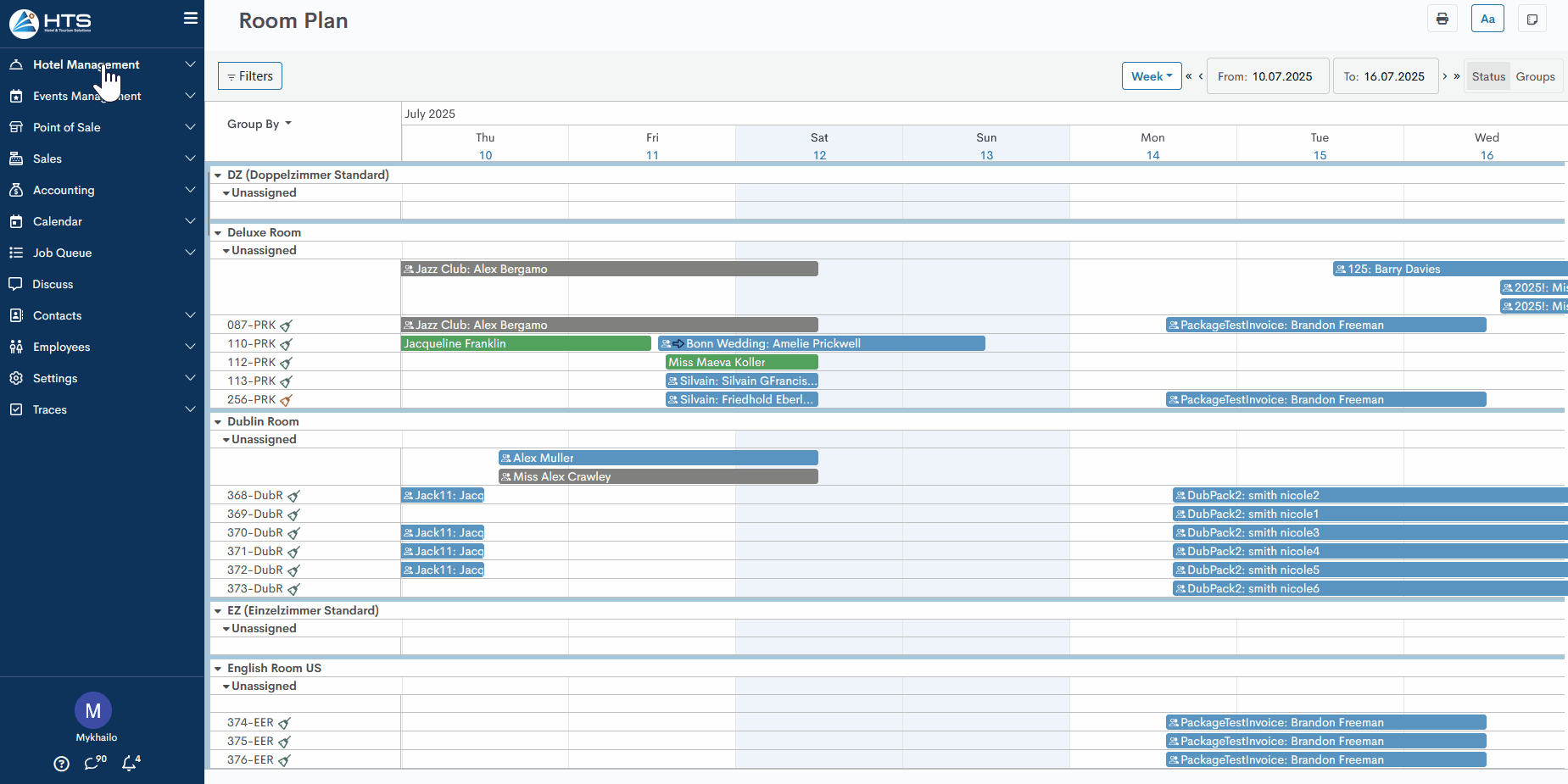- F/M/A (Frühstück/Mittagessen/Abendessen) - das System zählt sie zu einer bestimmten Spalte, aufgrund der Arrangementart, und zeigt den Gesamtbetrag an;