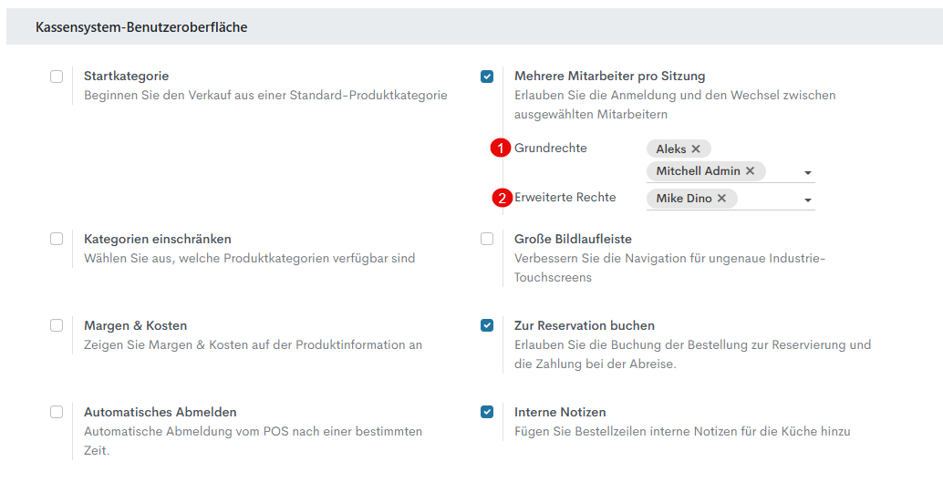 Sobald die Funktion aktiviert ist, können Berechtigungen für bestimmte Benutzer im Kassensystem (PoS) festgelegt werden: