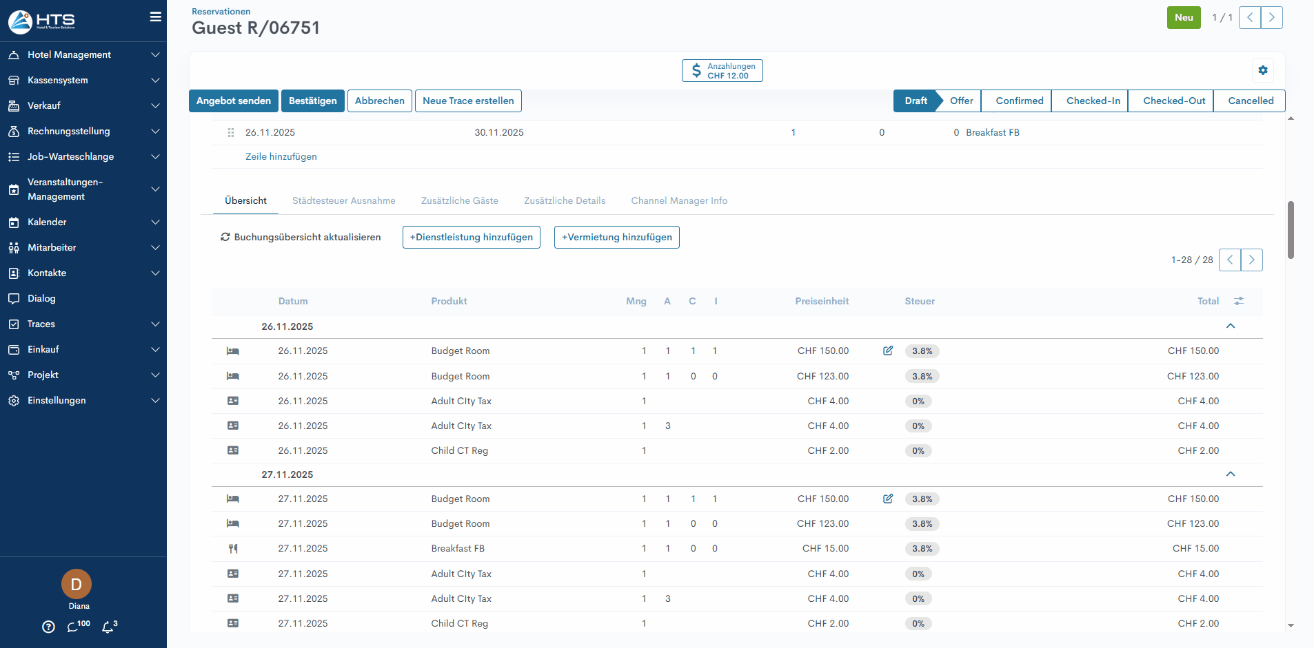 1. Öffnen Sie eine bestehende Reservation oder erstellen Sie eine neue.