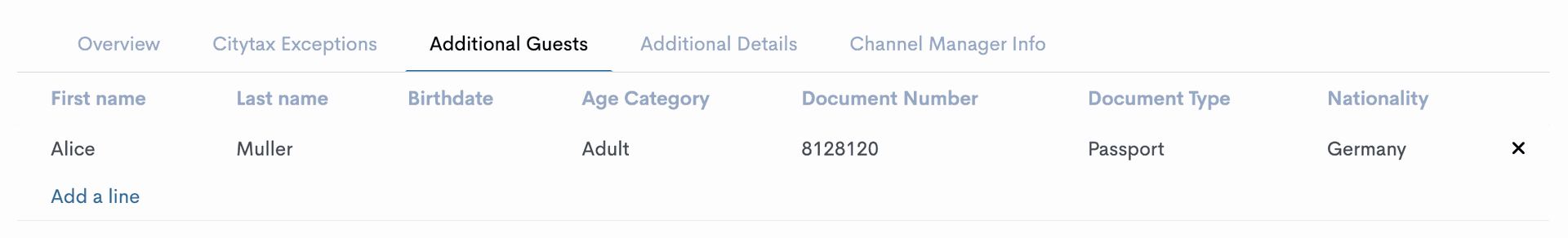 All adult contacts provided during the self check-in will be added to the Additional Guests tab on the reservation page, along with the submitted information.