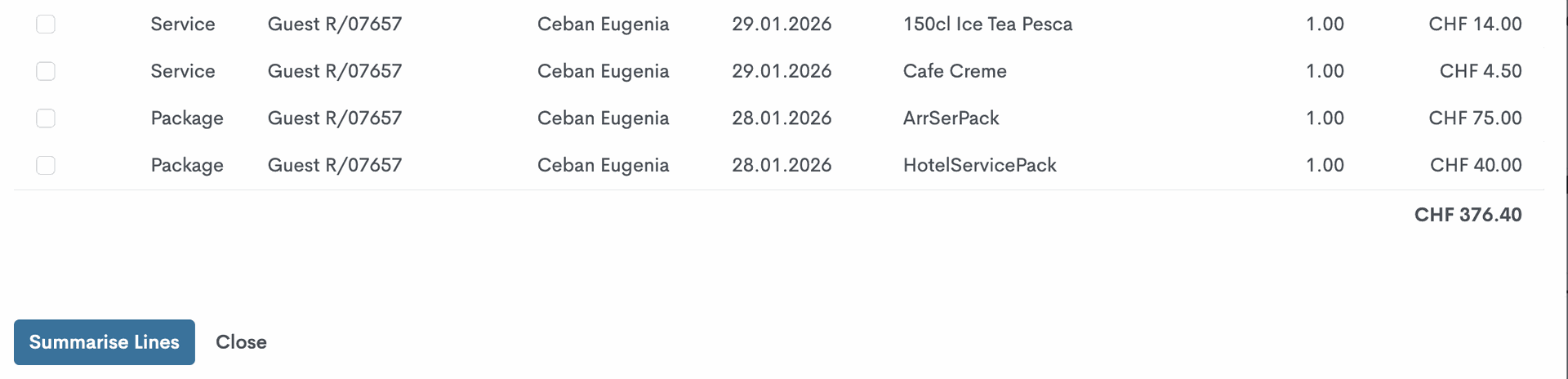 Some corporate guests can be reimbursed only for accommodation, while additional charges (e.g., breakfast, dinner, minibar) must be paid privately. To comply with corporate reimbursement policies, hotels often need to provide a single summarised invoice line instead of a detailed breakdown.