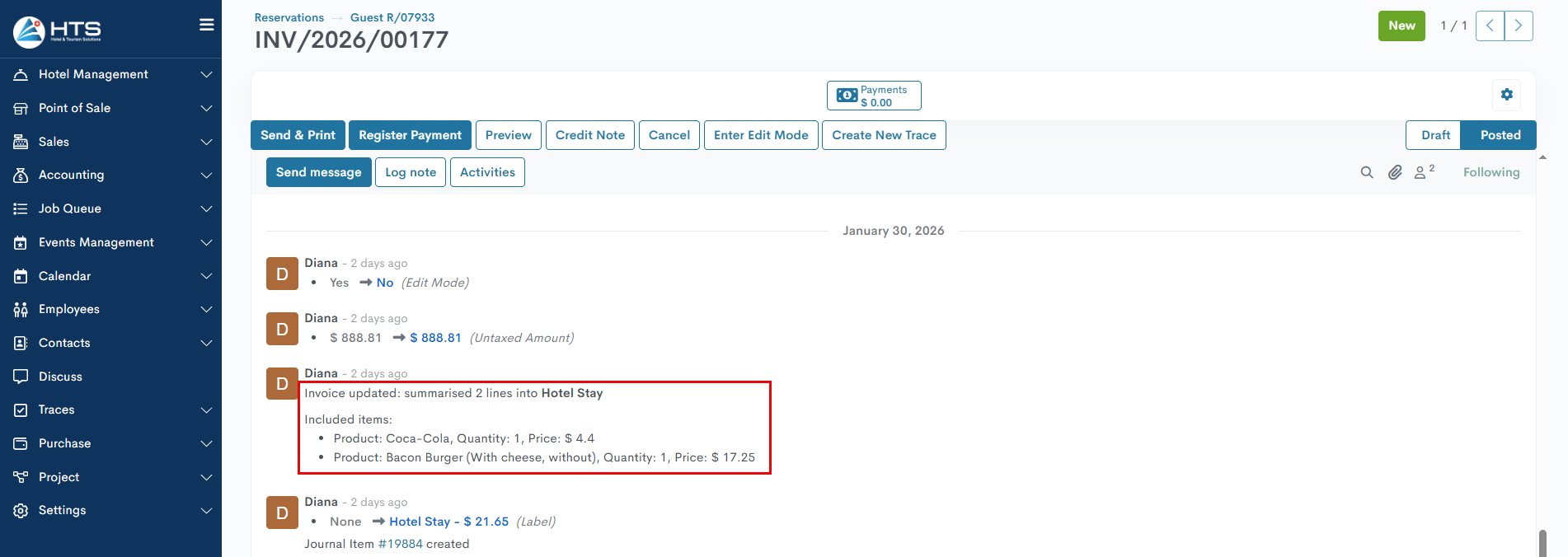 The feature is applicable only for unpaid reservation invoices, once the invoice is generated and confirmed.