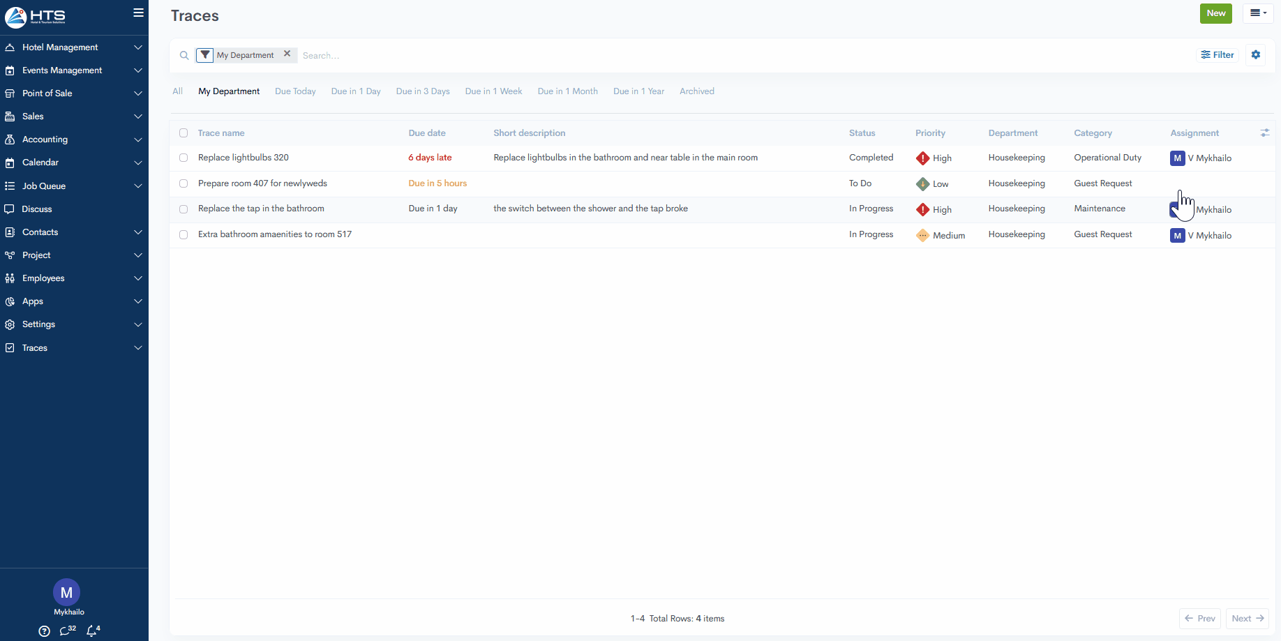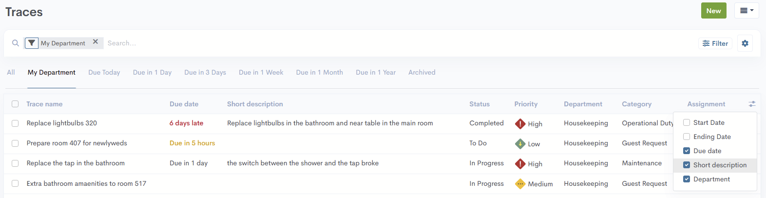 - My Department (applied by default, showing only Traces assigned to the user's department)