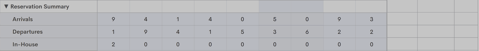 - Abreisen - die Anzahl der Reservationen im Status "Checked-In", bei denen das Datum des Check-Outs gleich dem entsprechenden Datum ist;