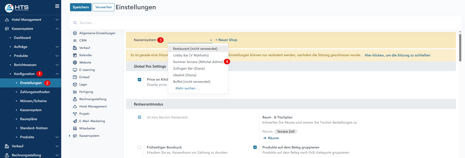 Einstellungen im Kassensystem