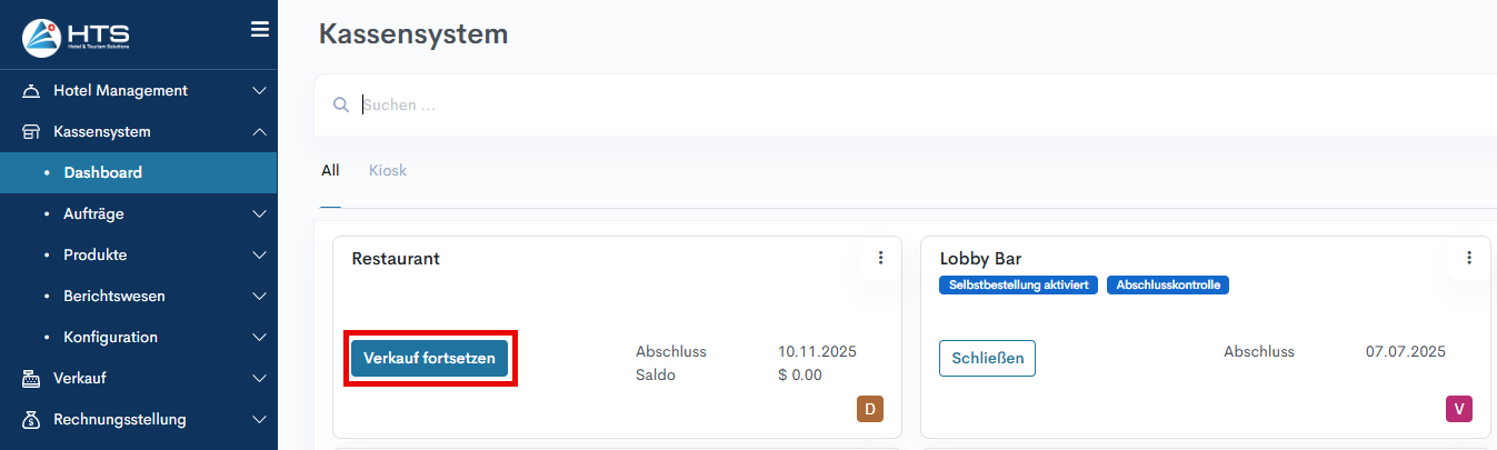 1. Klicken Sie im Modul «Kassensystem» auf den Tab «Dashboard».