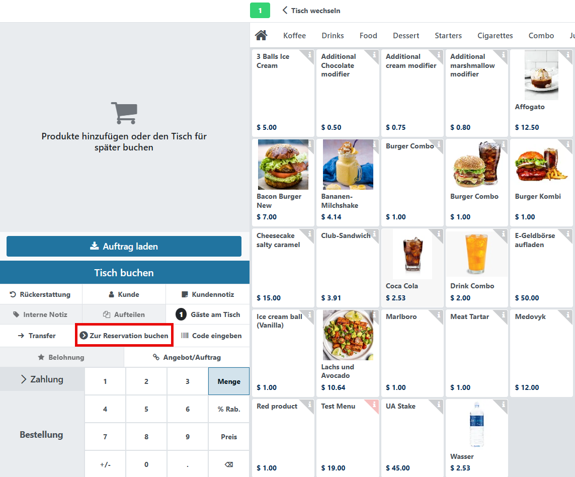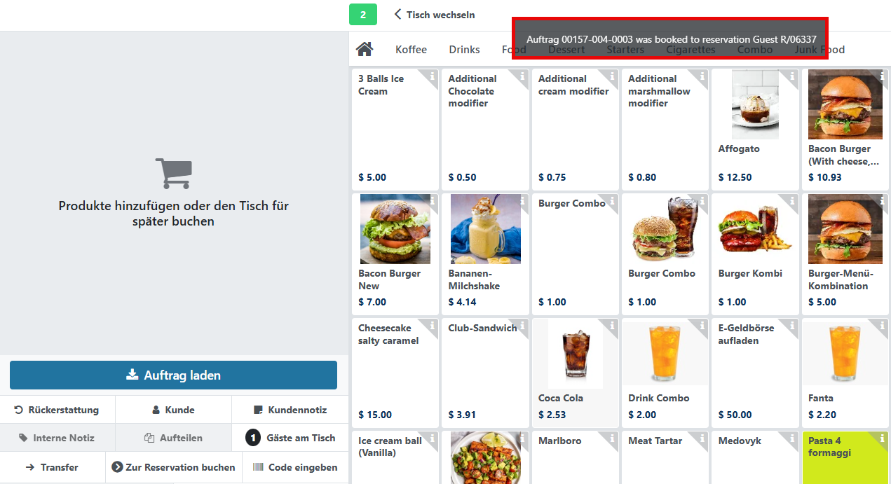 2. Reservationsname – die Reservationsnummer, auf die die Kassensystem-Bestellung gebucht wurde.