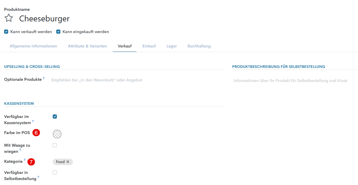 Kategorie (im Tab «Verkauf») – legt fest, zu welcher PoS-Kategorie dieses Produkt gehört.