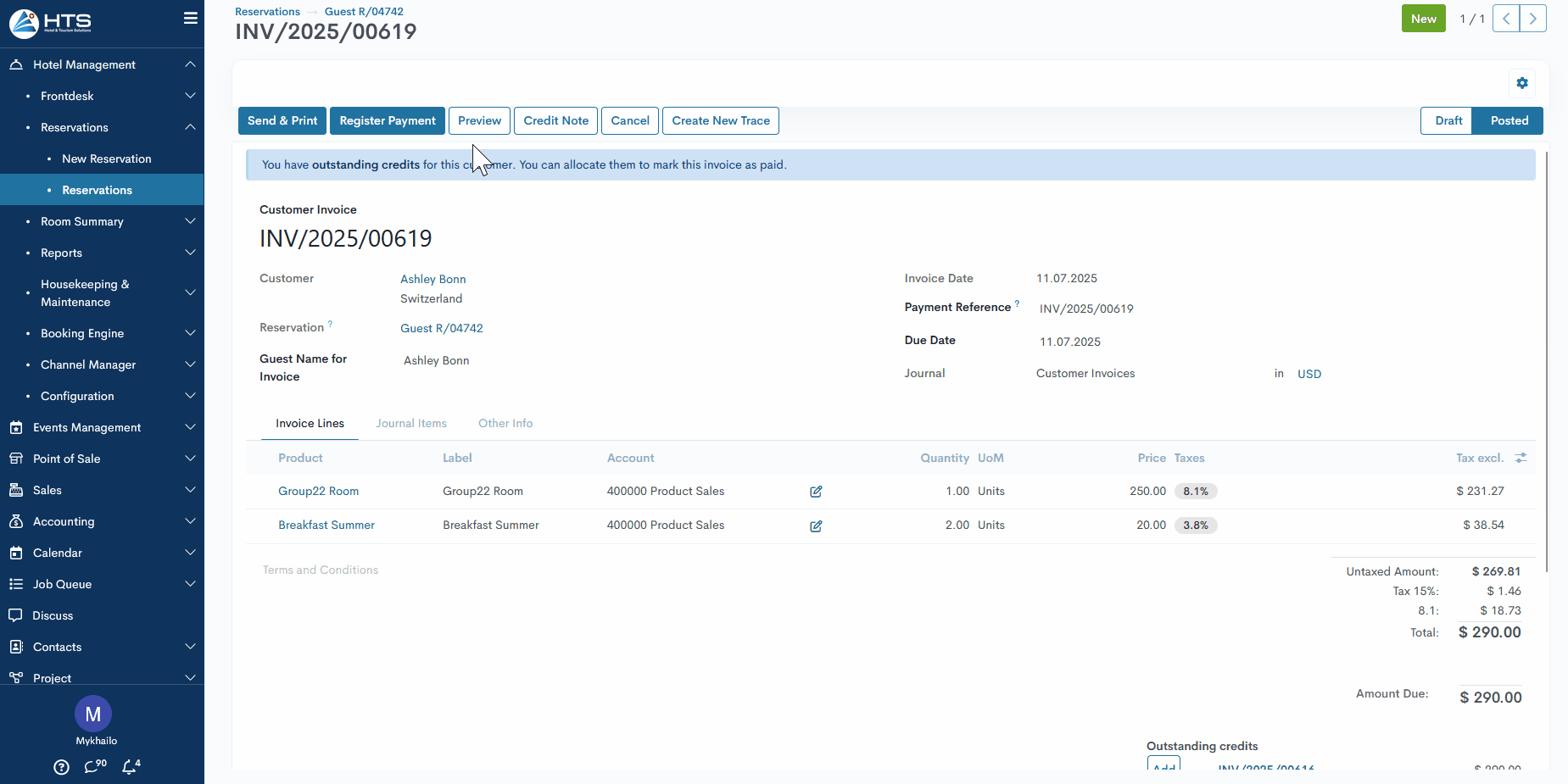 Das System ermöglicht es dem Hotelpersonal, Gästebezahlungen schnell und präzise über verschiedene Zahlungsmethoden abzuwickeln. Benutzer können vollständige oder teilweise Zahlungen vornehmen und aus verfügbaren Zahlungsarten wie Barzahlung, Kreditkarte oder anderen benutzerdefinierten Methoden wählen. Eine korrekte Zahlungsverbuchung stellt sicher, dass der Saldo des Gastes korrekt aktualisiert wird und die Finanzunterlagen konsistent bleiben.