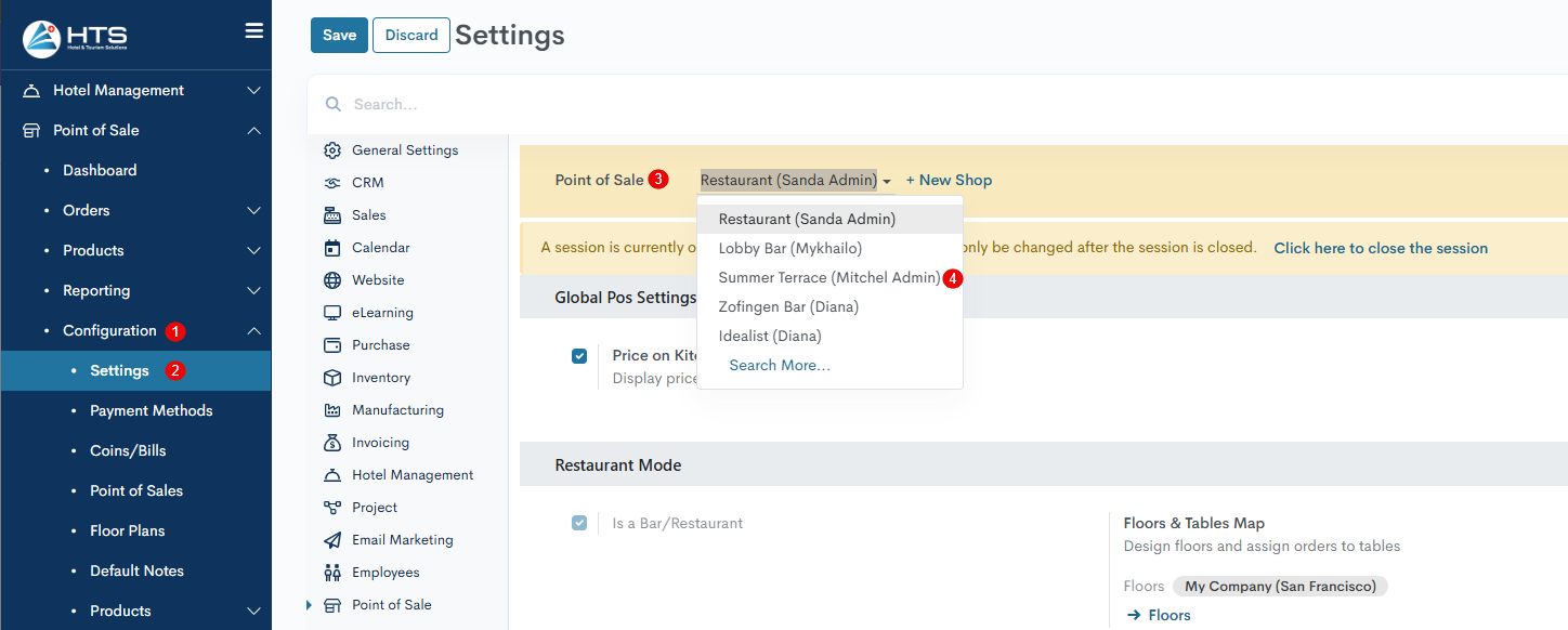 - klicken Sie im "Point of Sale" Modul auf die Registerkarte "Dashboard";