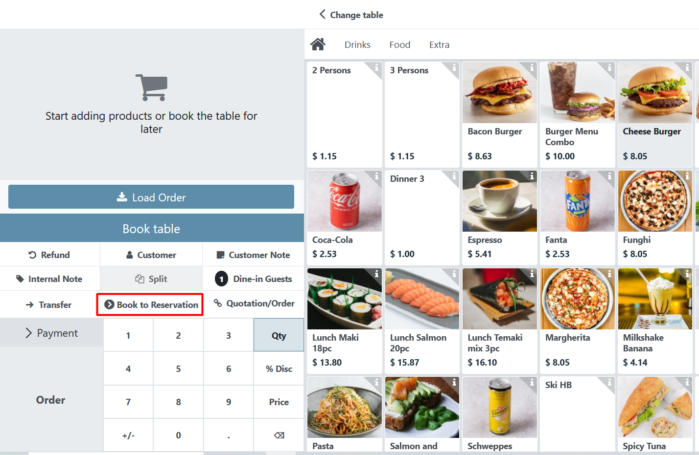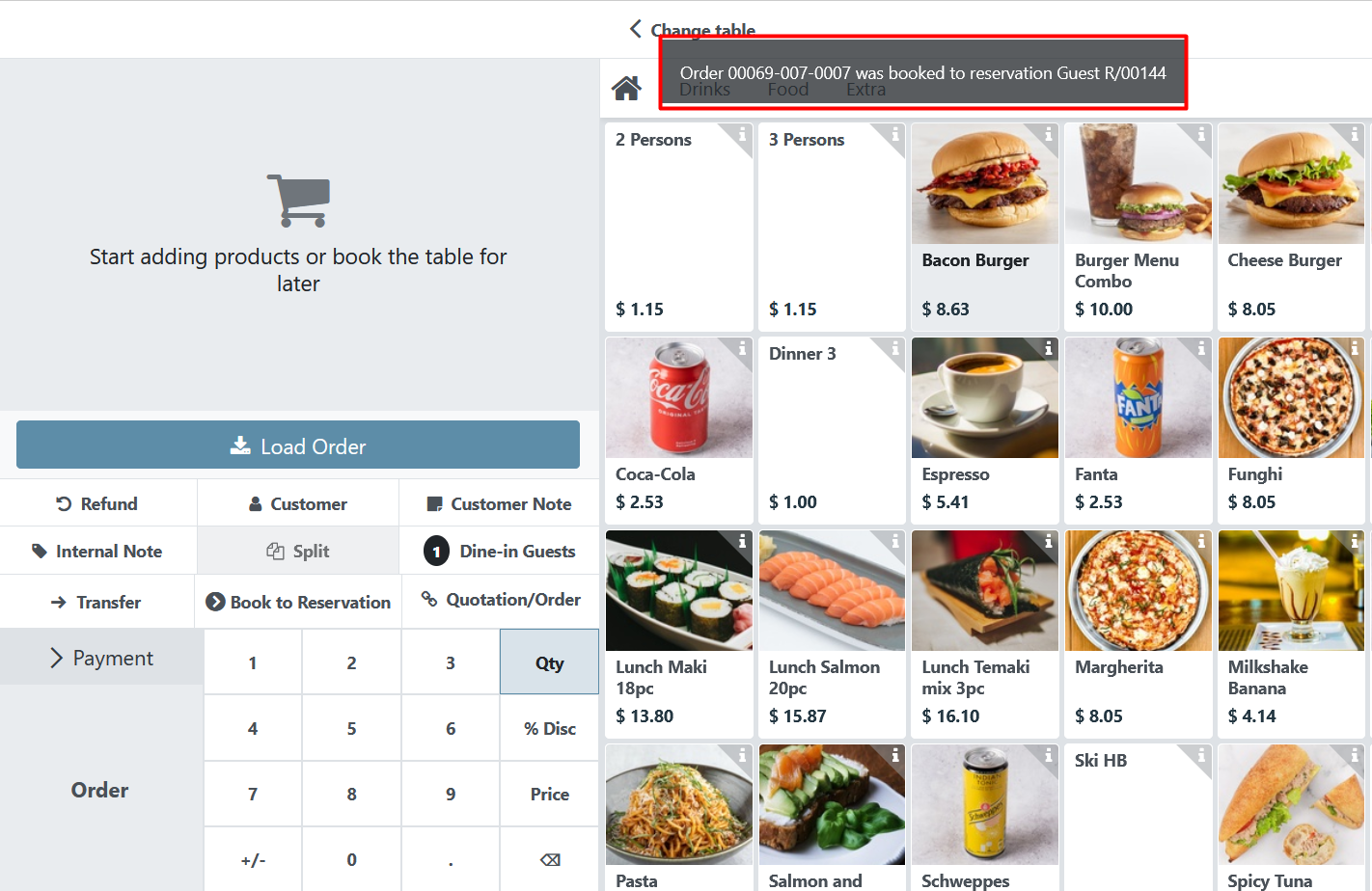 Nachdem die Bestellung zur gewünschten Reservation gebucht wurde, hat diese Bestellung im "PoS" Modul den Status "Zur Reservation Gebucht". Gehen Sie wie folgt vor, um die Korrektheit der Gebühren für die Reservation zu überprüfen: